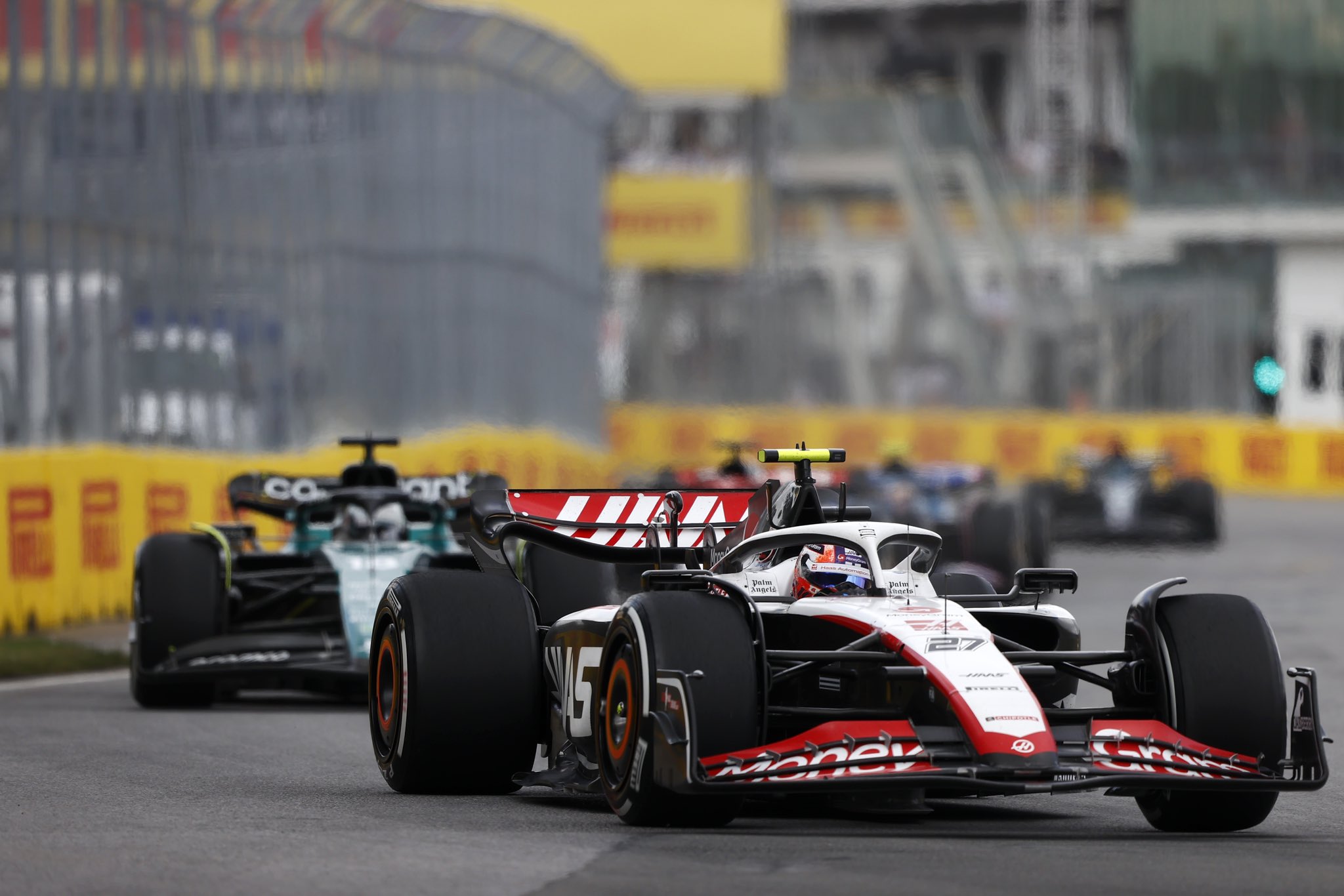 Tras la genial clasificación de Nico Hulkenberg bajo pista mojada el sábado por la tarde, todo hacía presagiar que el equipo Haas podría tener una buena oportunidad de cosechar puntos en Montreal. No obstante, nada más lejos de la realidad. Desde el principio de la carrera se vio claro que el alemán no tenía ritmo y montó un enorme tren de coches tras él que le fueron adelantando ya fuera por velocidad o por estrategia. Finalmente, Hulkenberg fue relegado a la 15º posición sin opción ninguna de puntuar. Aun peor le fue la tarde a Kevin Magnussen quien, tras salir desde la posición 13º, fue condicionado por un incidente provocado por Nyck de Vries.