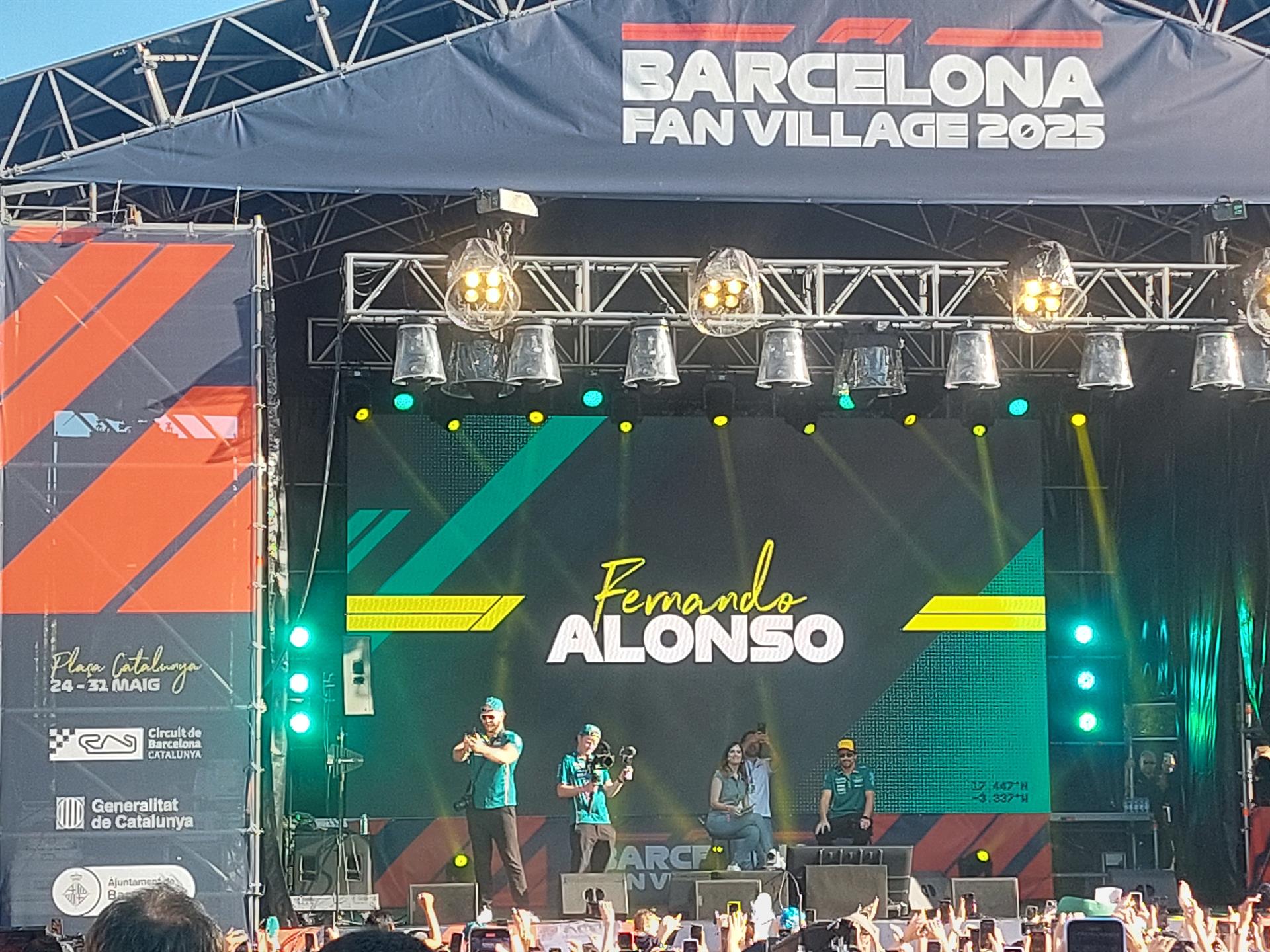“Estamos solo en la novena carrera del año y mi adaptación a Williams ha sido muy buena. Hemos hecho clasificaciones muy buenas. Nos ha faltado un poco de suerte los domingos, pero espero que se alinee todo y que sea aquí en Barcelona”, deseó el piloto madrileño ante el delirio de los miles de aficionados que se encontraban enfrente del escenario.