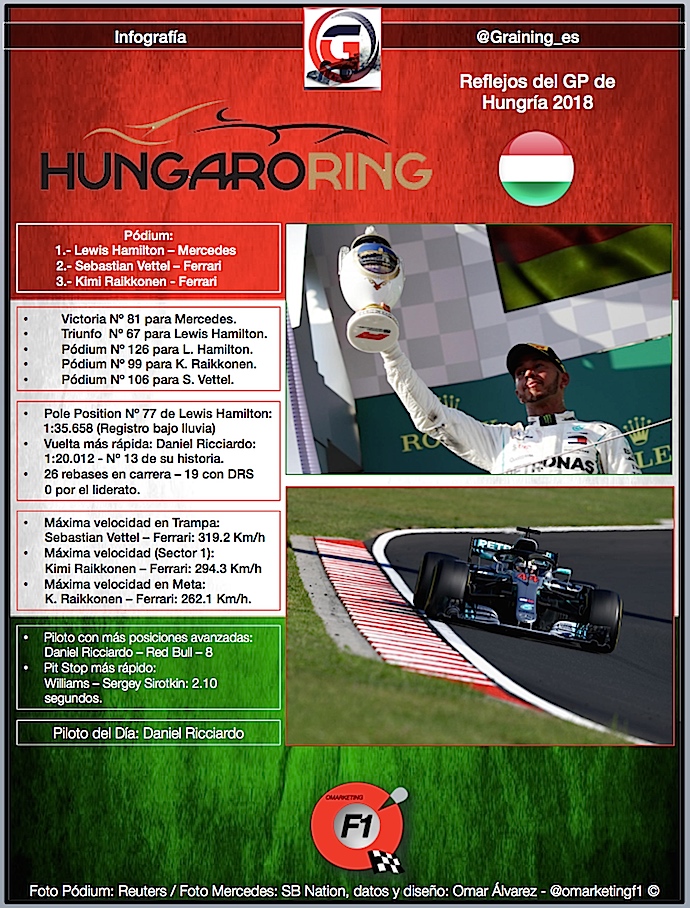 Lo más destacado del Gran Premio húngaro en Hungaroring en números fue: