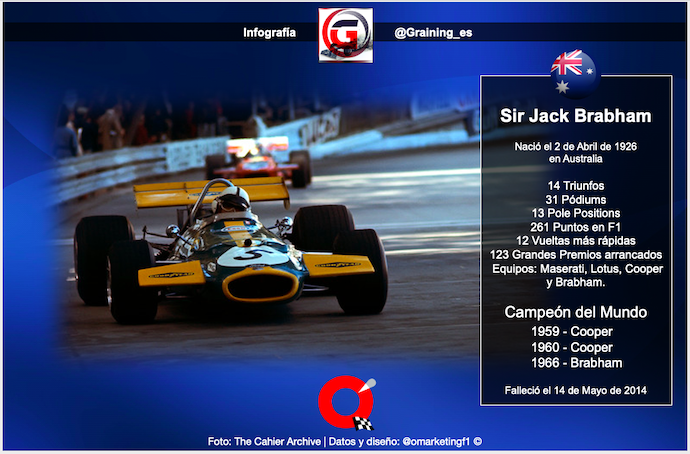 Su nombre real era John Arthur Brabham y nació un día como hoy en 1926 en Australia.