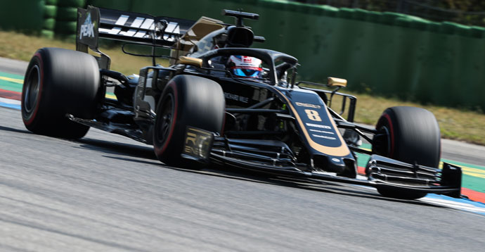 Ambos pilotos comenzaron la FP1 con el neumático medio (amarillo) antes de cambiar y terminar la sesión con los blandos (rojos). Grosjean tuvo el octavo crono más rápido haciendo un 1: 15.074 con blandos en su vuelta 17 ° de las 30 completadas durante la sesión. Magnussen, que se detuvo en la pista durante su vuelta inicial con un problema de sensor que se resolvió rápidamente, estaba cinco puestos atrás en la hoja de tiempos con la 13a vuelta más rápida. Su tiempo fue de 1: 15.759 en su octava de 27 vueltas durante la sesión, también con los blandos.
