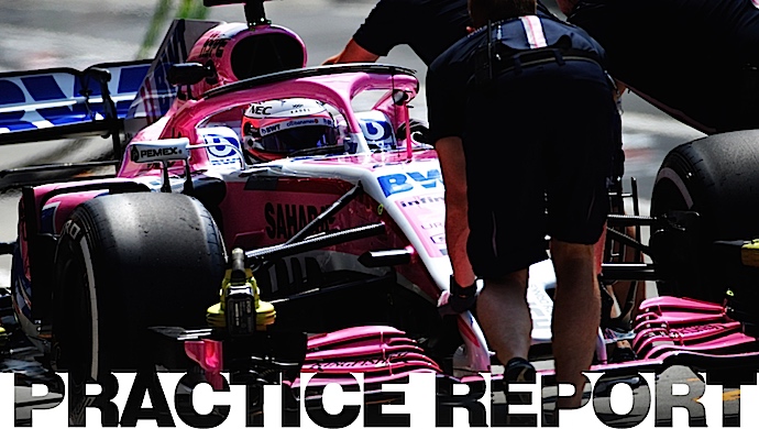 Durante la primera practica libre los rosas se mantuvieron en la pista con los compuestos medios y blandos sin probar el compuesto morado, el más blando de la gama para este fin de semana.